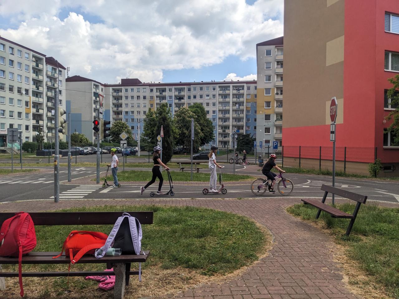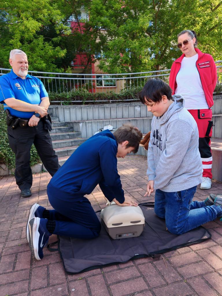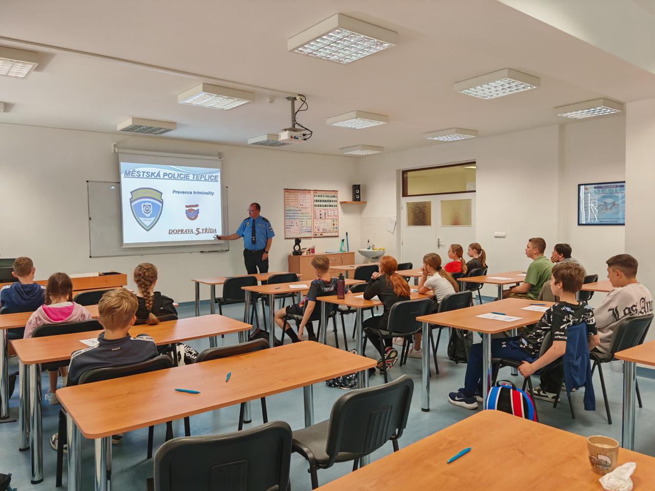 Šesté třídy v rámci projektového dne navštívily dopravní hřiště. Zde pod vedením strážníků městské policie si žáci vyzkoušeli jezdit na kolech a koloběžkách v dopravním provozu, vyzkoušeli si základy první pomoci a na přednášce se dozvěděli plno zajímavých informací, jak se chovat, když vyrazí ven.